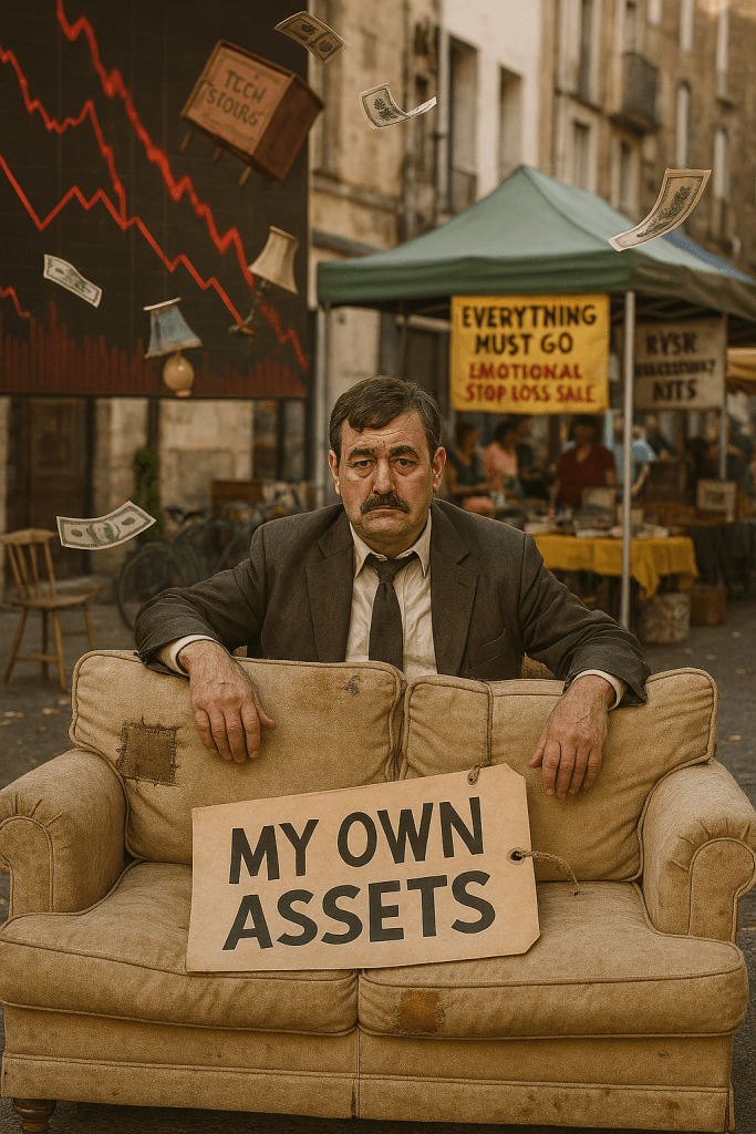 In the world of financial trading, this quip hits home as a cheeky reminder of the pitfalls when desperation drives decisions—like liquidating your own «furniture» (aka assets) during a market dip.