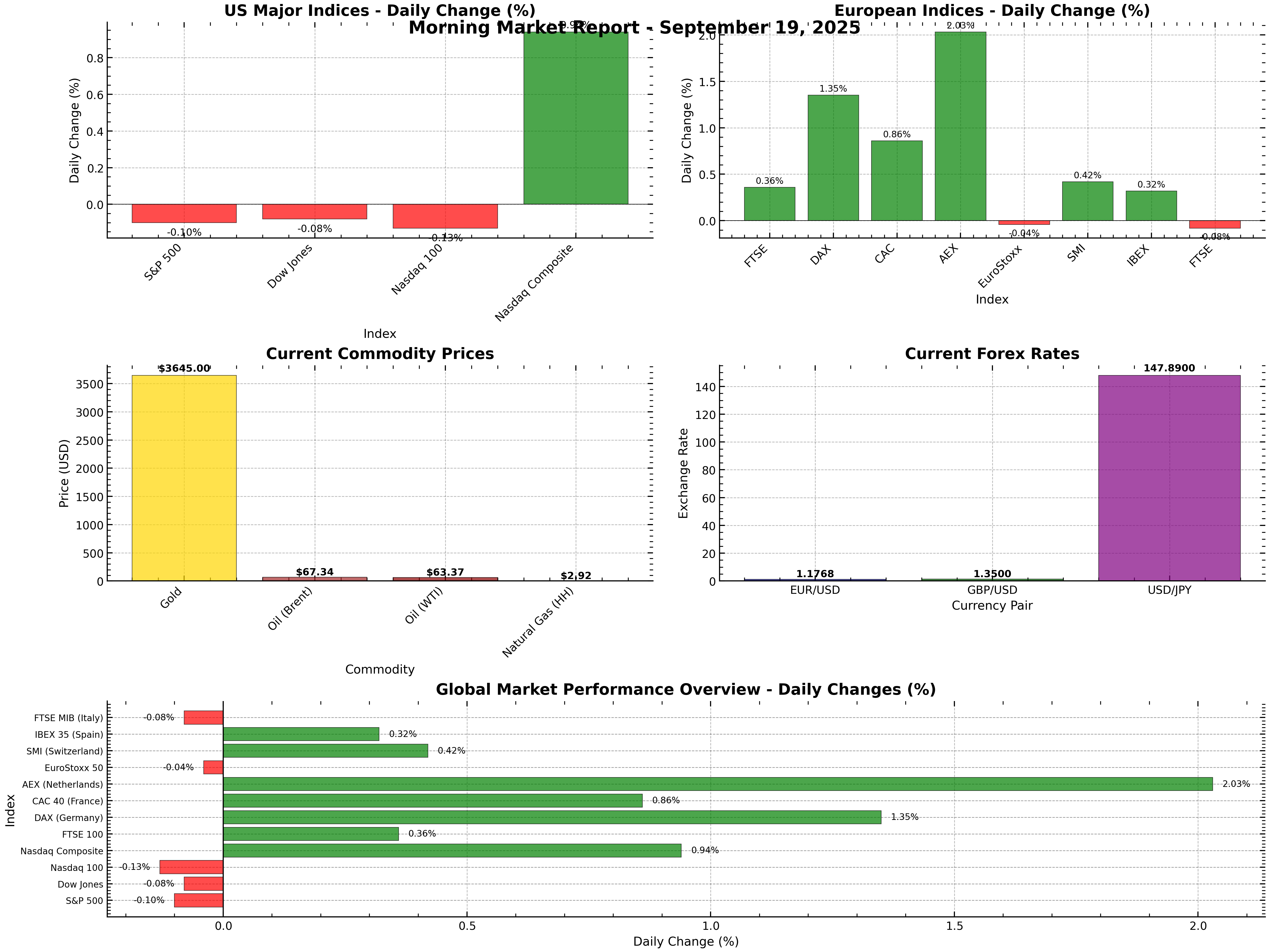 The mood is cautiously optimistic: Europe is leading gains, US futures are consolidating, and commodities remain firm. Watch for central bank commentary and economic data to drive the next move.