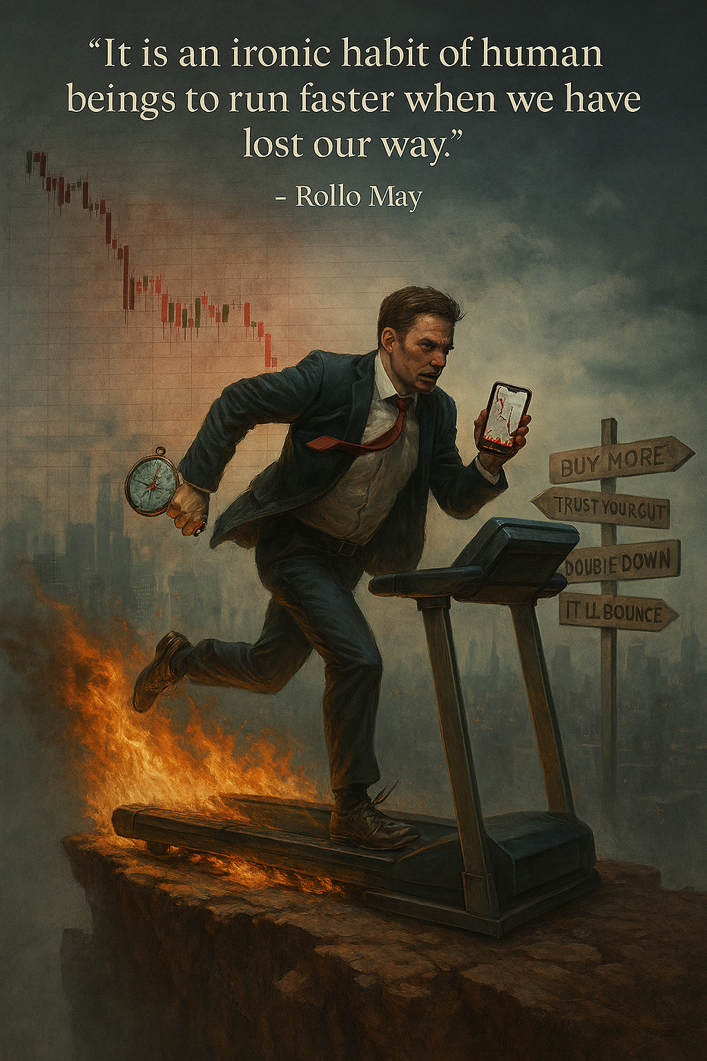 May’s quote isn’t just poetic — it’s painfully accurate. The faster we run when we’re lost, the further we get from clarity. In trading, that means deeper drawdowns, more emotional damage, and eventually, a very expensive lesson in humility.