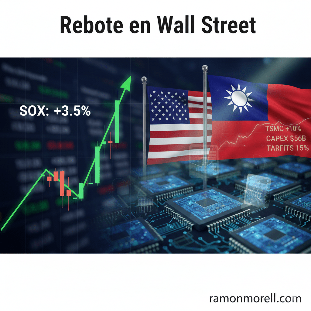 El gran protagonista de la jornada ha sido Taiwan Semiconductor Manufacturing Co. (TSMC). Sus resultados del cuarto trimestre de 2025 no solo han superado las expectativas, sino que su anuncio de un gasto de capital (Capex) de 56.000 millones de dólares para 2026 ha actuado como una inyección de adrenalina para un sector tecnológico que empezaba a mostrar signos de fatiga.